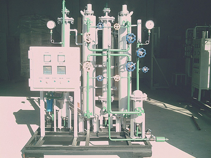 ??以純度大于97%的工業(yè)氫氣為原料氣,采用鈀觸煤為催化劑,通過(guò)氧和氫生成水,再通過(guò)冷凝干燥兩級(jí)處理,達(dá)到除氧和水的目的,最后再通過(guò)除塵過(guò)濾器,去除氫氣中的塵埃顆粒等。